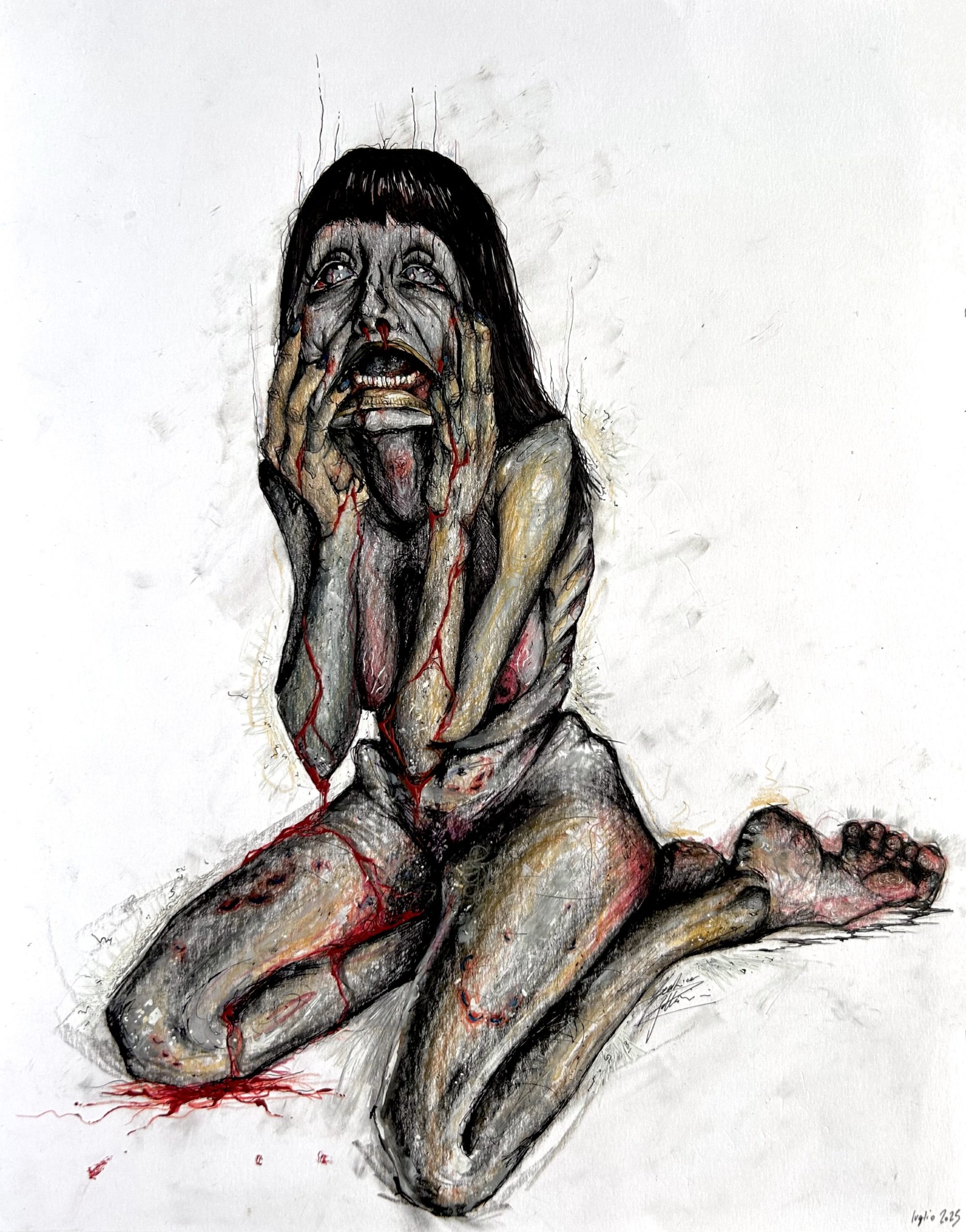 Autoritratto Emotivo, Tecnica mista su carta, 32×42.5cm, 2025